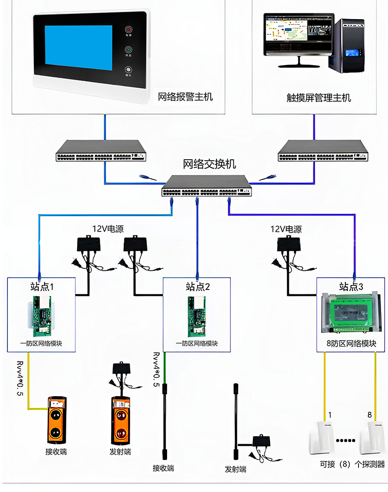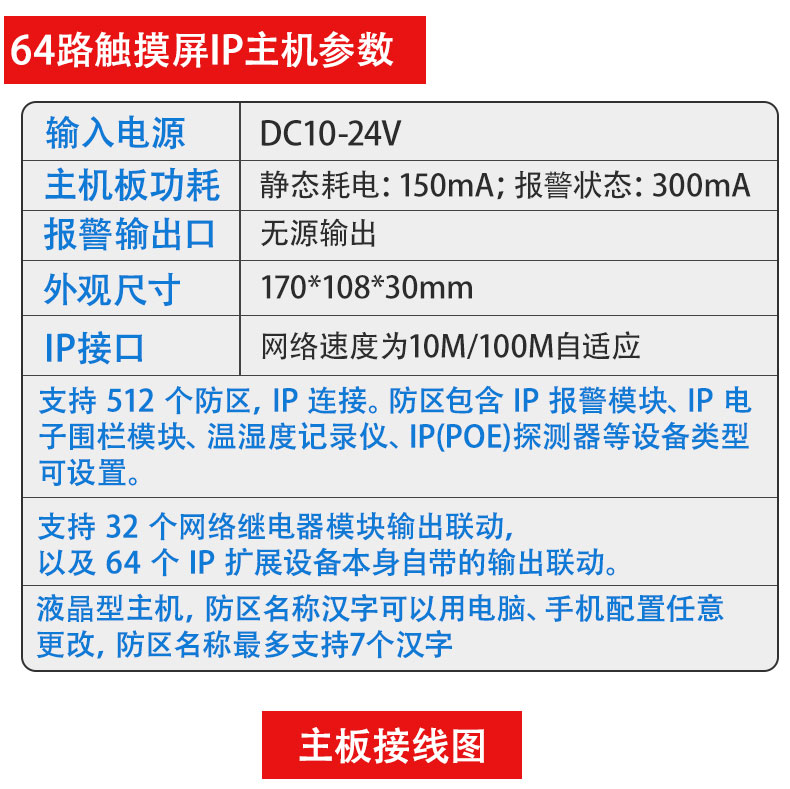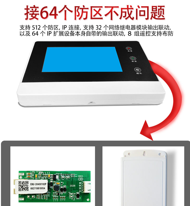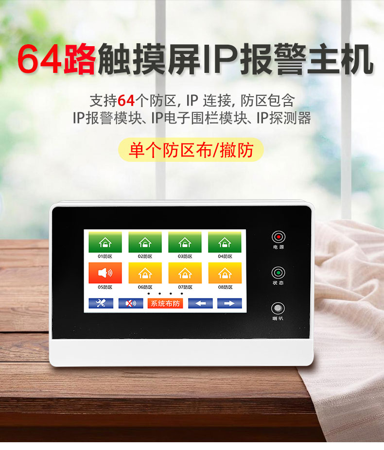 艾礼富韦尔64路周界触摸屏IP报警主机