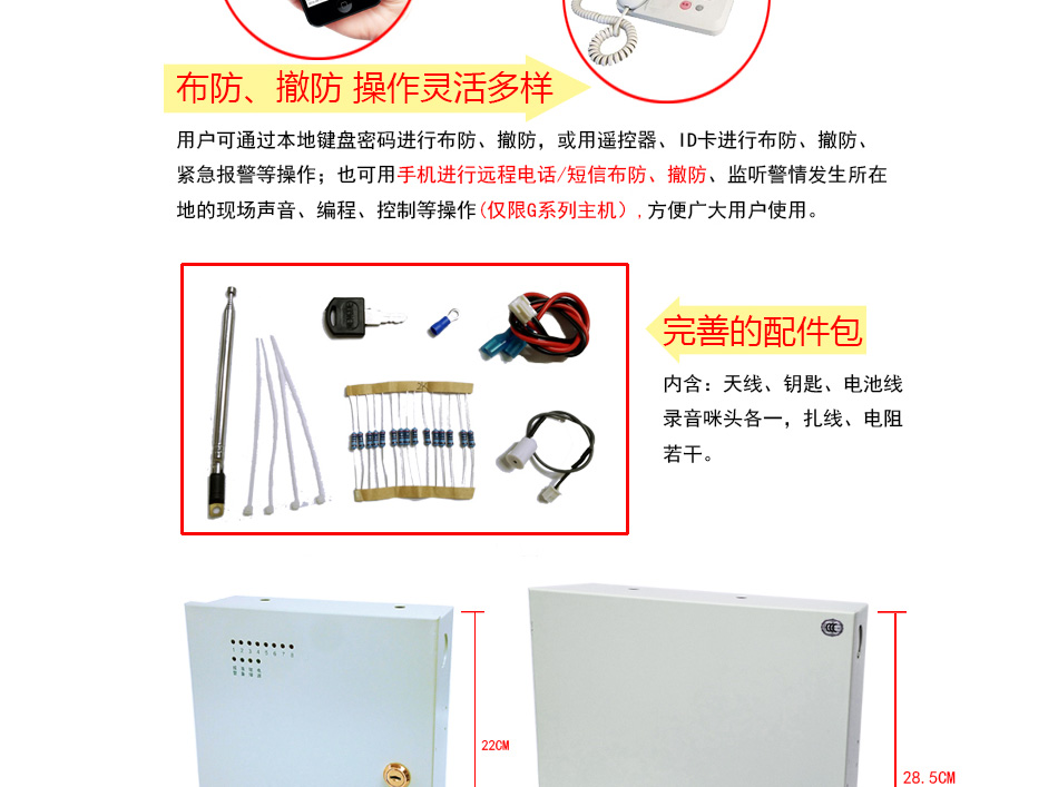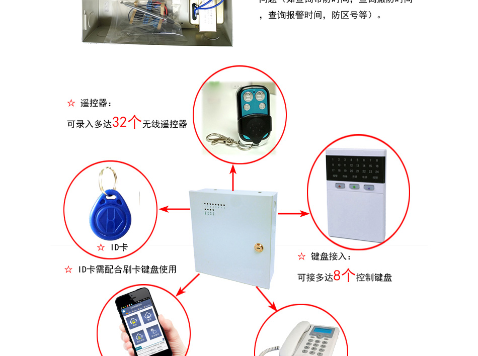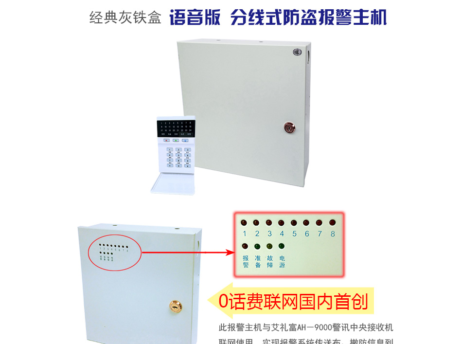 艾礼富韦尔8路有线/无线小型网络报警主机...