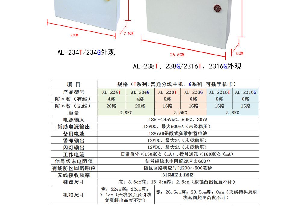 艾礼富韦尔 4/8/16分线报警主机 AL-234T/238T/2316T