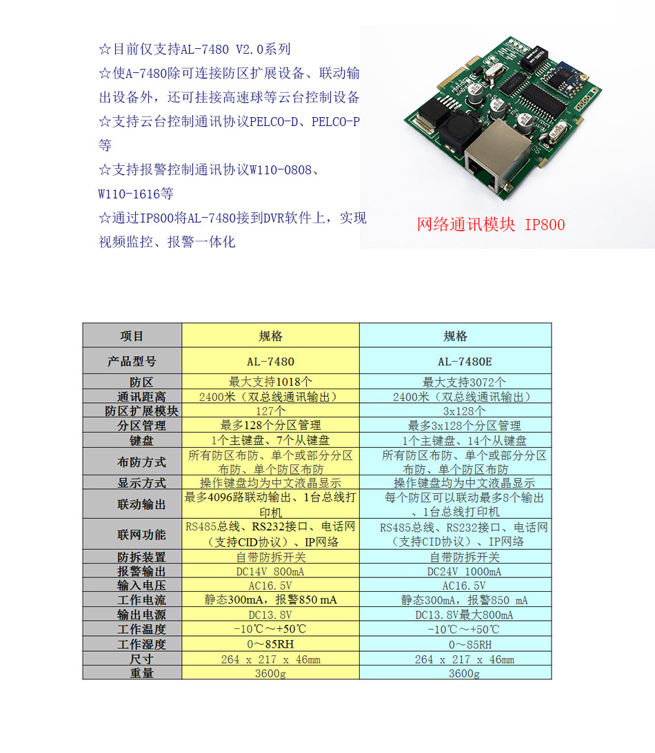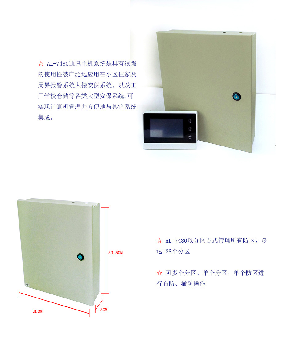 - 最多可接1018个防区:自身带有2个有线防区,通过通讯接口可以外接最多127个报警模块或者AL系列总线通讯主机,每个扩展输入设备最多可接8个的防区
