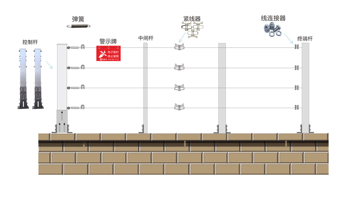 张力电子围栏周界报警系统安装示意图