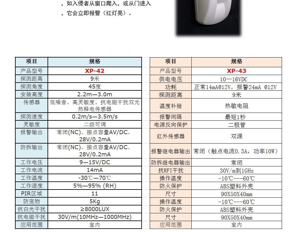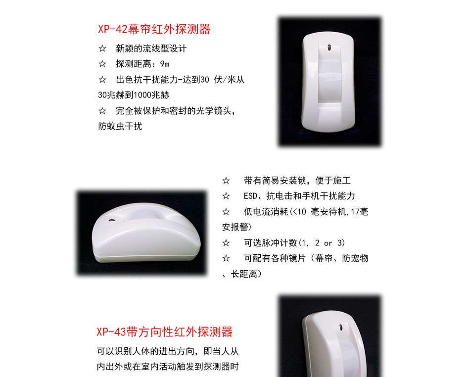 方向性/幕帘红外探测器 XP-42/XP-43