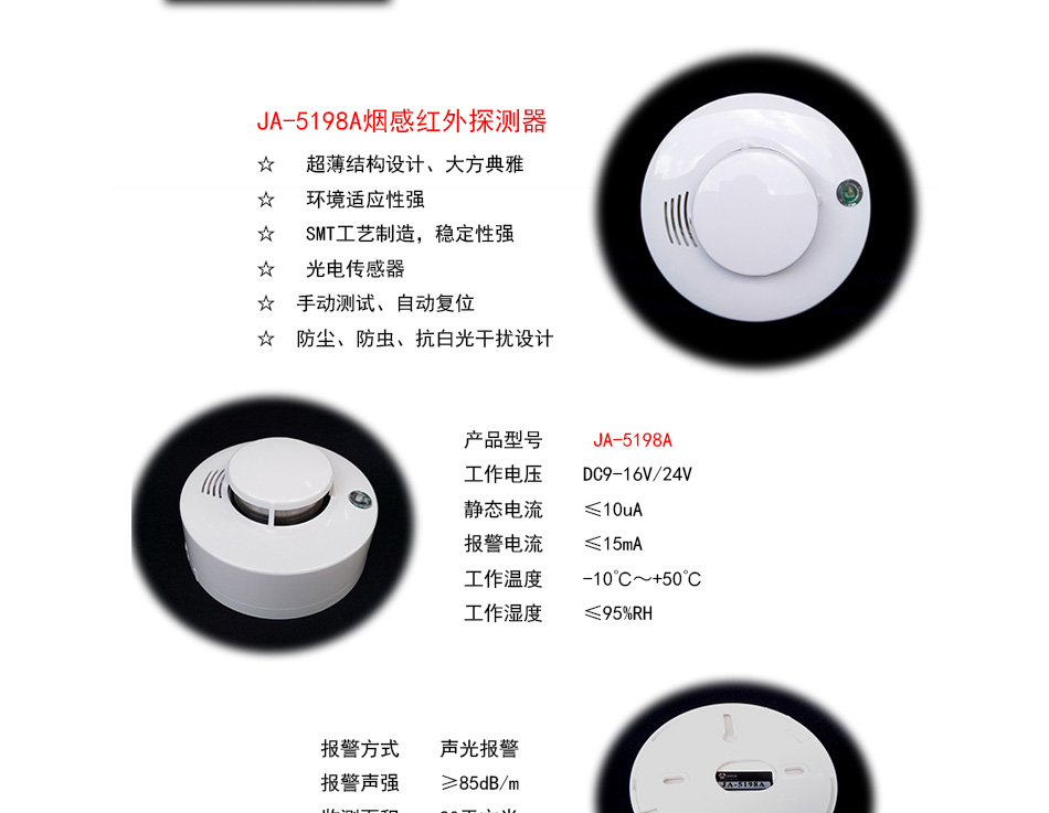 艾礼富韦尔有线光电式烟雾探测器 JA-5198A