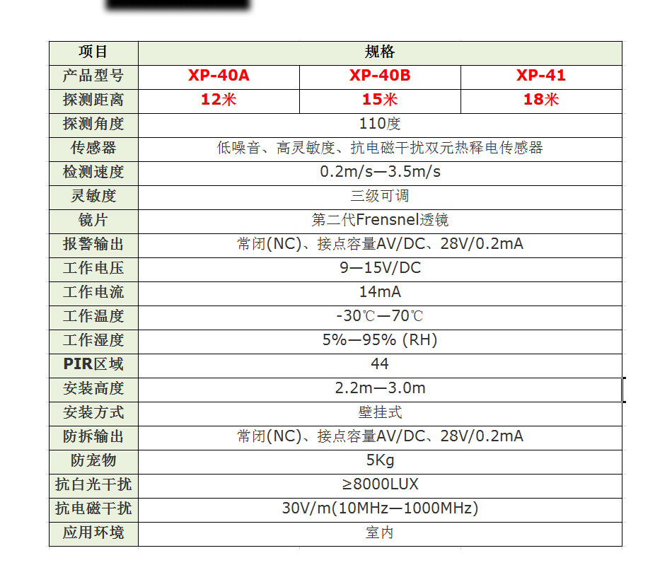 艾礼富 室内双元被动红外探测器 XP-40A/40B/41