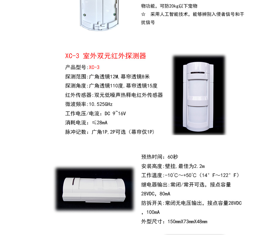 艾礼富韦尔智能三鉴被动红外探测器 XC-4 / XC-3