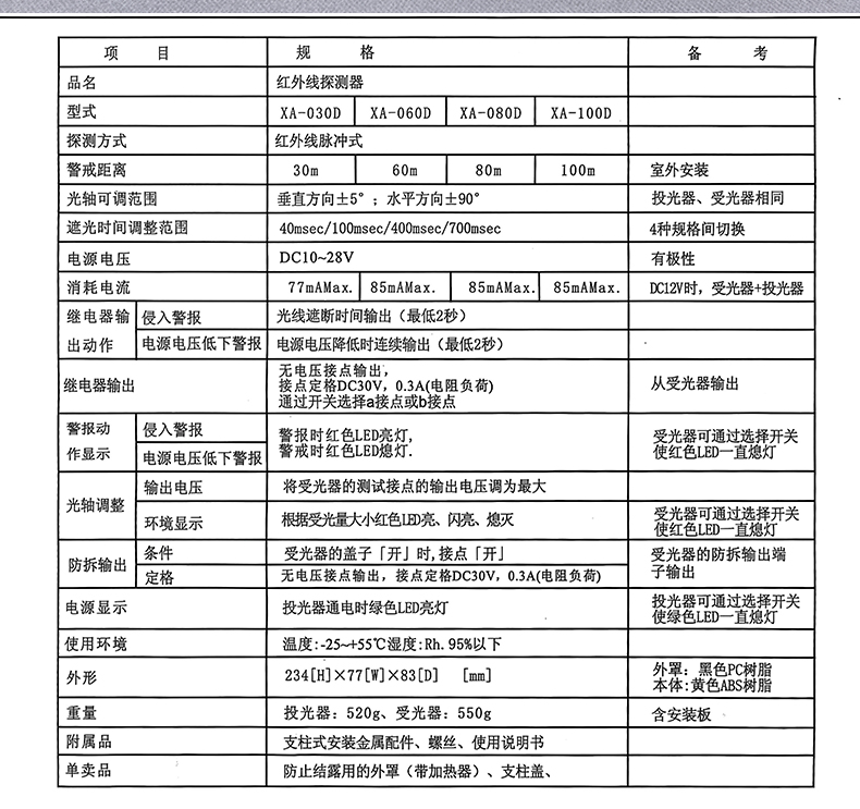 原装艾礼富红外对射XA系列和MY系列